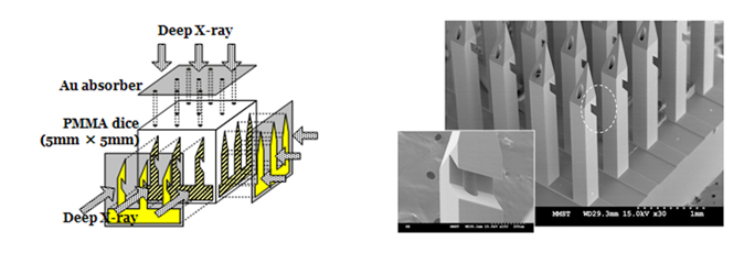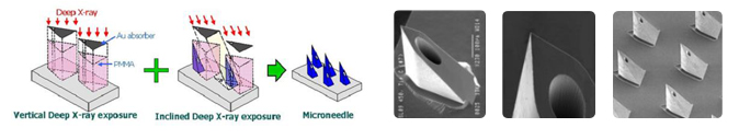 The tip of the needle must be sharp enough to be inserted in the skin easily. MEMS(Micro Electro Mechanical System) is used to make this small and complicated shape. It adopts technologies used when manufacturing mechanical structure or elements by applying technology of semiconductor manufacturing process.